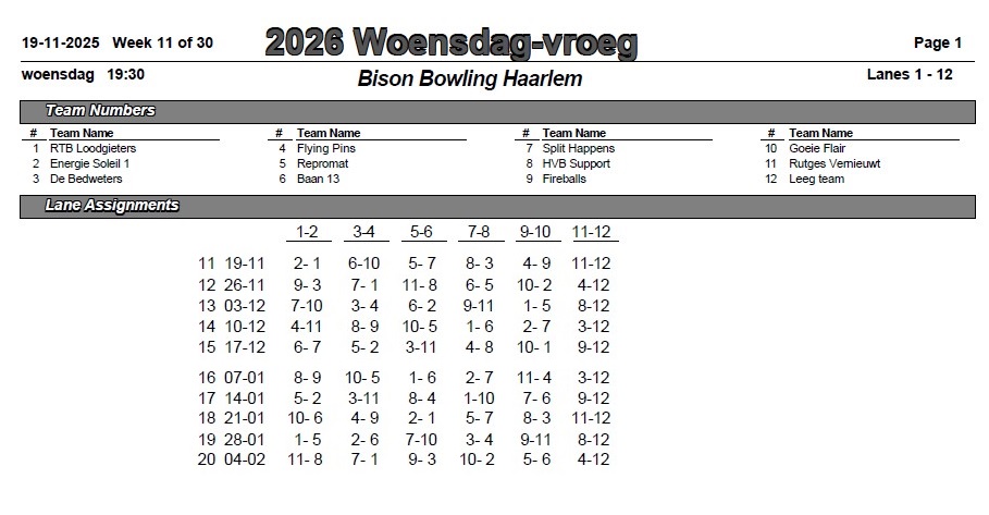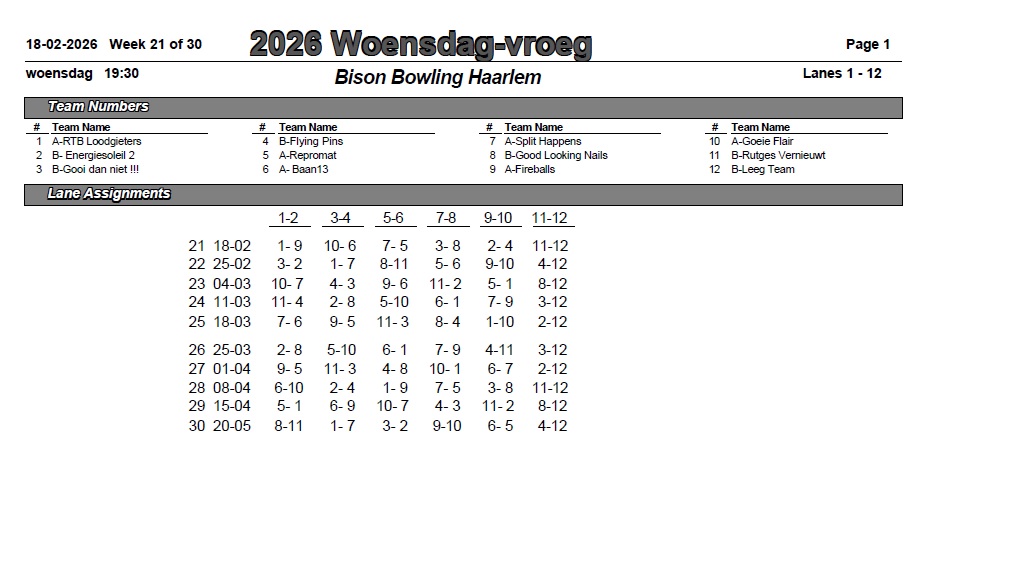 | Banenschema 2e periode | |